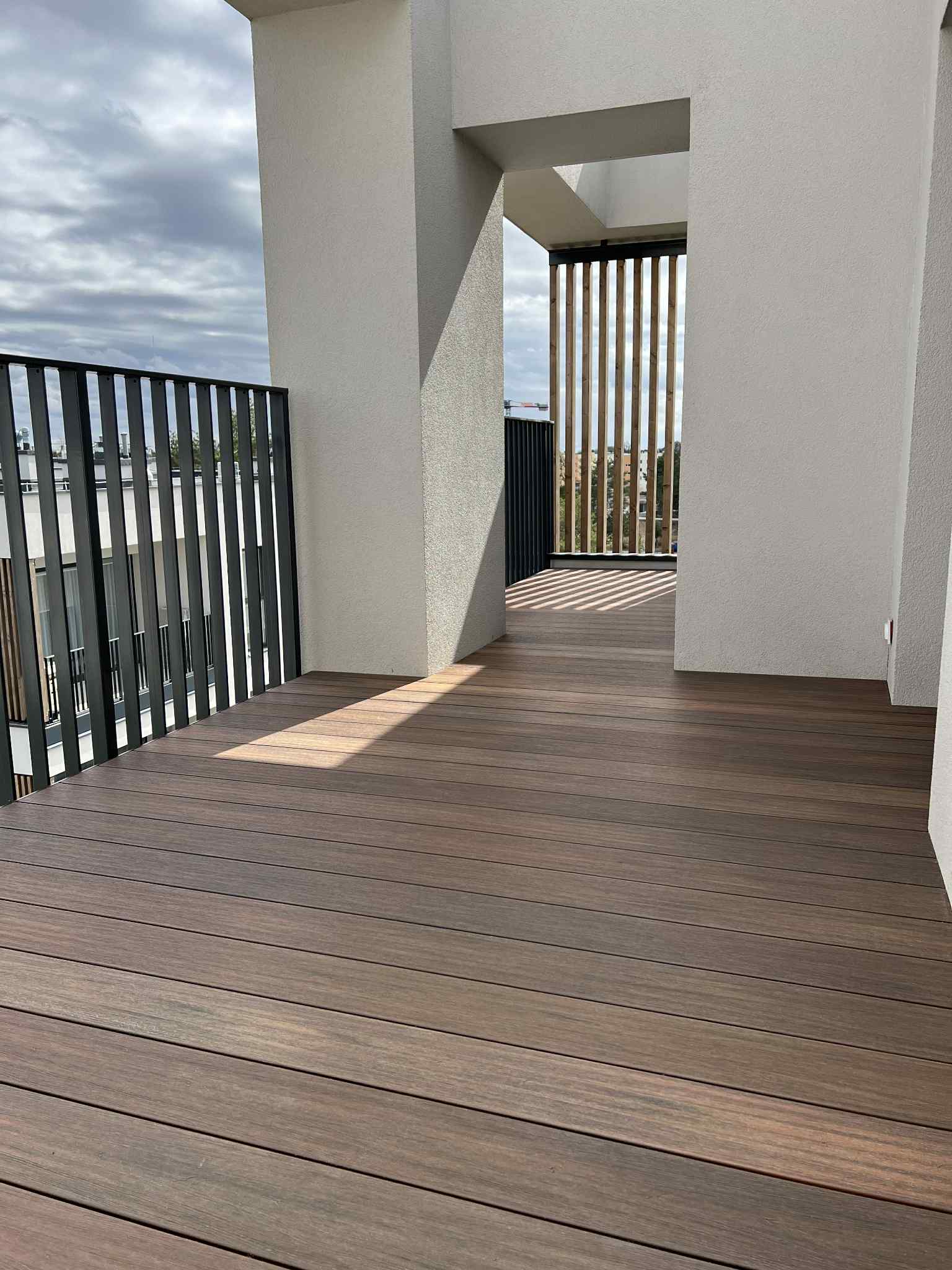 Taras kompozytowy to idealne rozwiązanie dla osób ceniących estetykę drewna, ale szukających materiału, który nie wymaga regularnej konserwacji. Deski kompozytowe są odporne na wilgoć, pleśń, promieniowanie UV i zmienne warunki atmosferyczne. Nie trzeba ich olejować ani malować, a mimo to przez lata zachowują swój wygląd. Dzięki antypoślizgowej powierzchni są również bezpieczne w użytkowaniu — nawet po deszczu. To trwała, funkcjonalna i bezproblemowa alternatywa dla drewna, która świetnie sprawdza się na nowoczesnych tarasach, balkonach czy przy basenach.